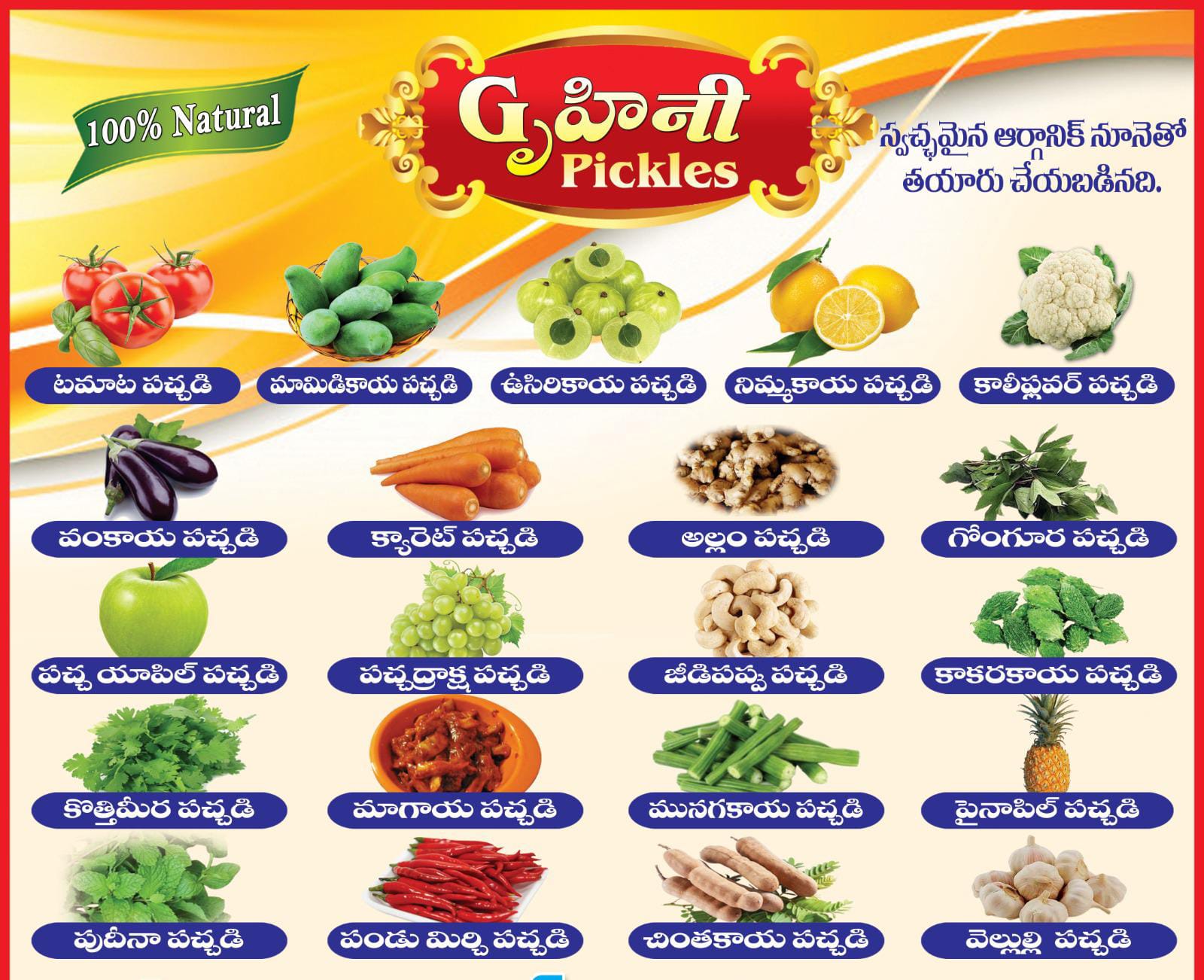 1. **మిక్స్ వెజిటబుల్ పికల్** - కాలానుగుణ కూరగాయలు మసాలా దినుసులతో కలిపిన సంపూర్ణ మిశ్రమం.