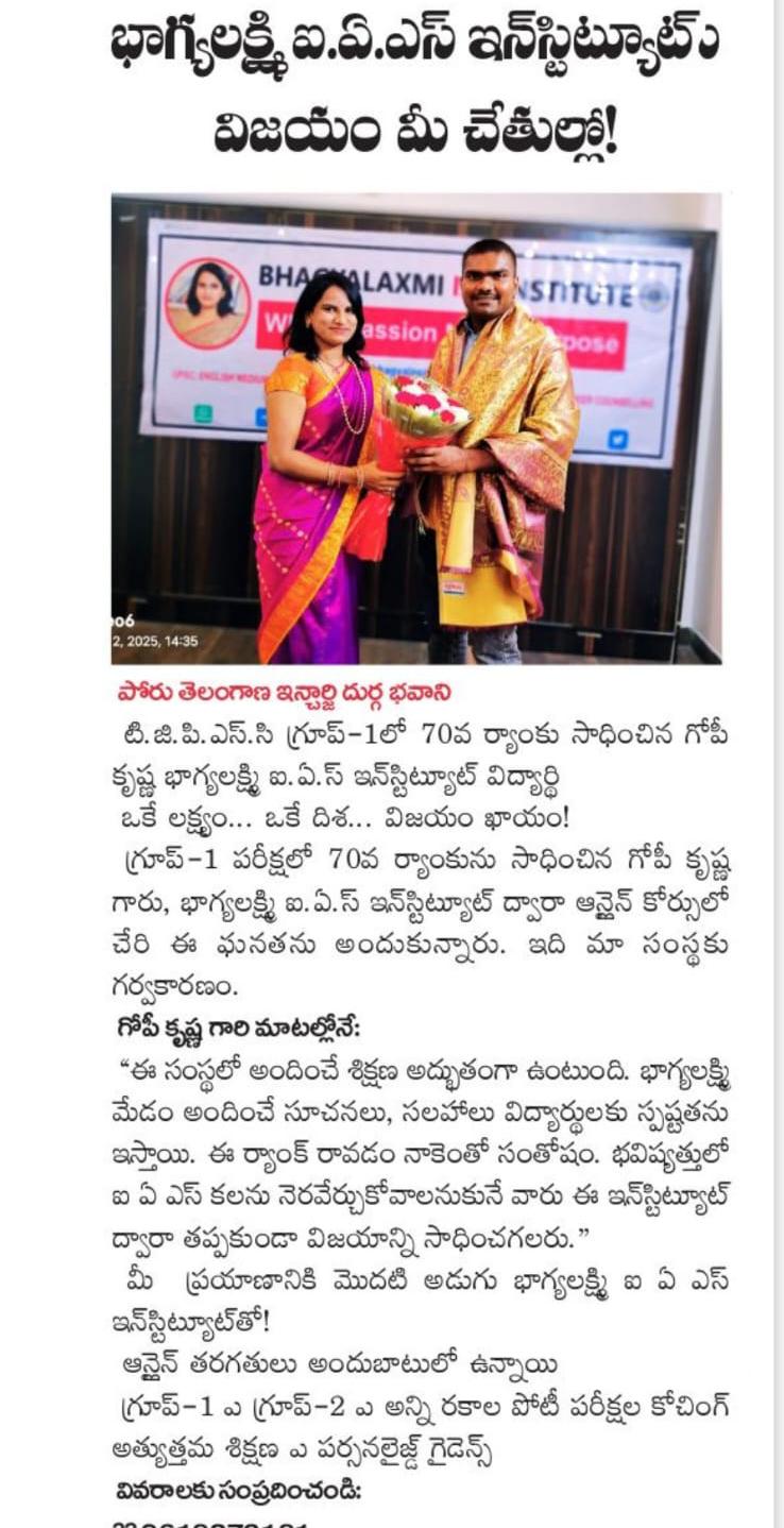 youtube : www.youtube.com/@BHAGYALAXMI_IAS_INSTITUTE