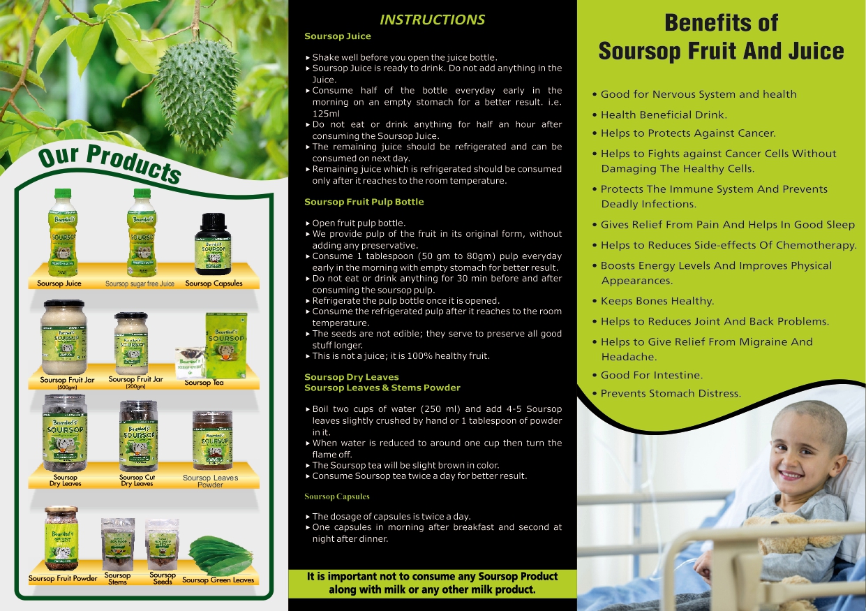 Our vision is to make this unknown and magical fruit with cancer killing properties known to everyone and make available at affordable rates. Our vision is to touch the lives of cancer patients life and make it pain less treatment for cancer as possible. Keeping all these in mind we *"BourNeel's"* have manufactured a wide range of Soursop products for people which are economically affordable.