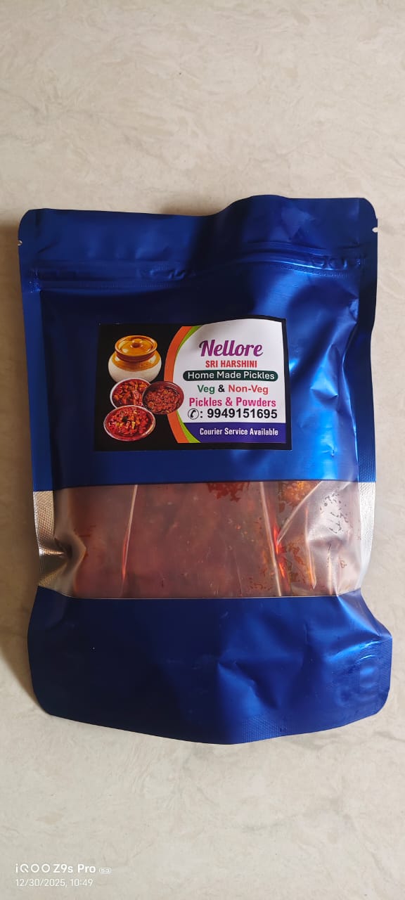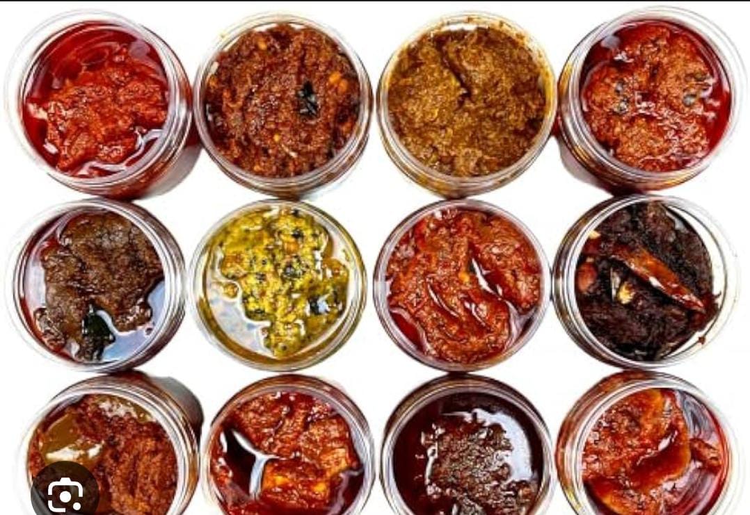 Lemon, Sweet Narinja, Mango, Avakaya, Grated Raw Mango Pickle Tomato, Tindora, Amla, Red Chilli, Gongura, Tamarind Chutney, Tamarind Thokku, Pudina Chutney, Coriander Chutney, Mango Ginger Chutney, Mango Pickle, Kakarakaya (Bitter Gourd)